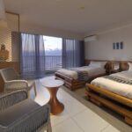 オーシャンビューを体感する海沿い(土浜海岸)のリゾートホテル。田中一村の絵画を飾った部屋や大島紬美術館など美にあふれた空間が広がっている。